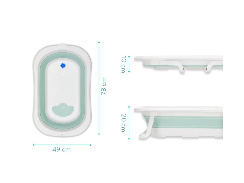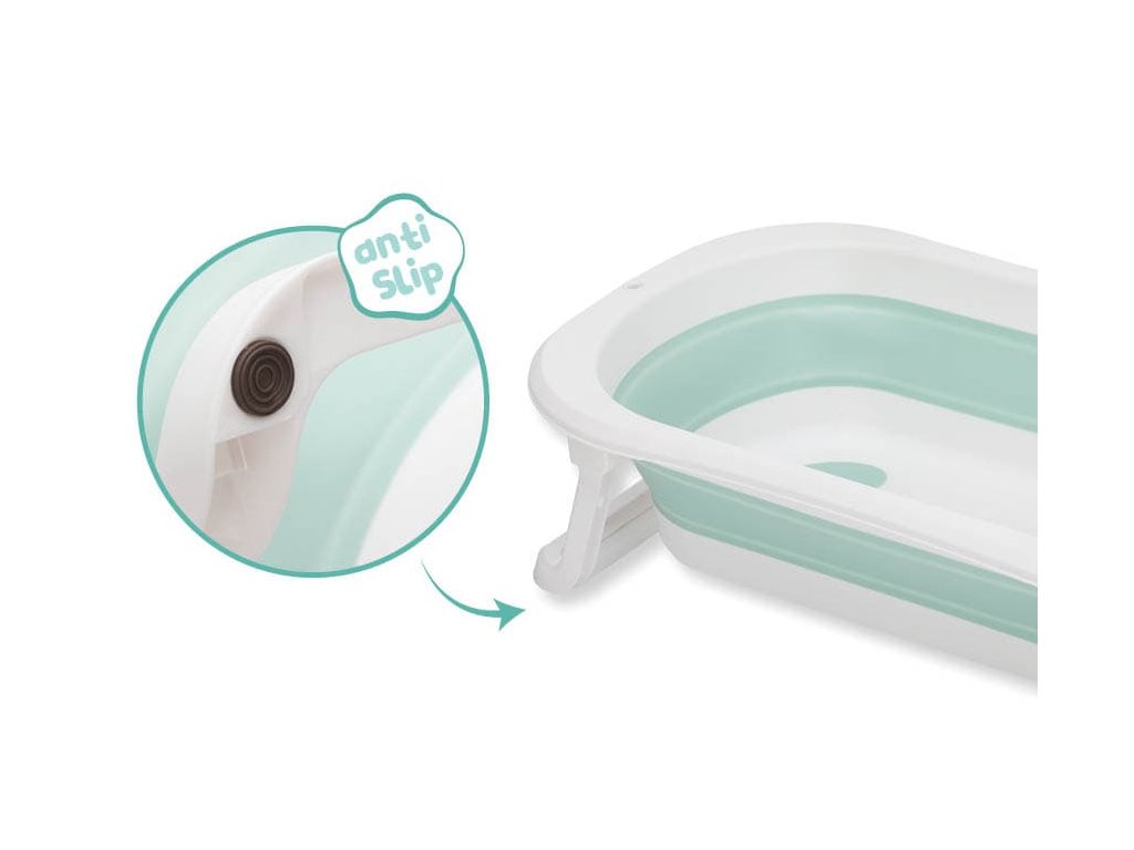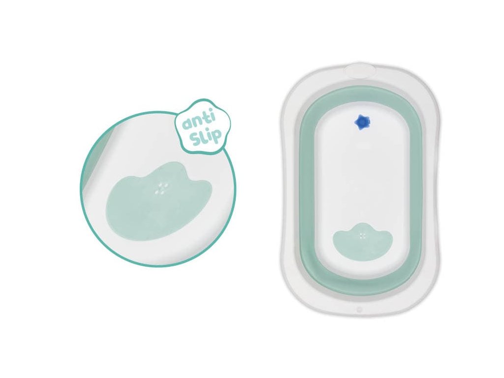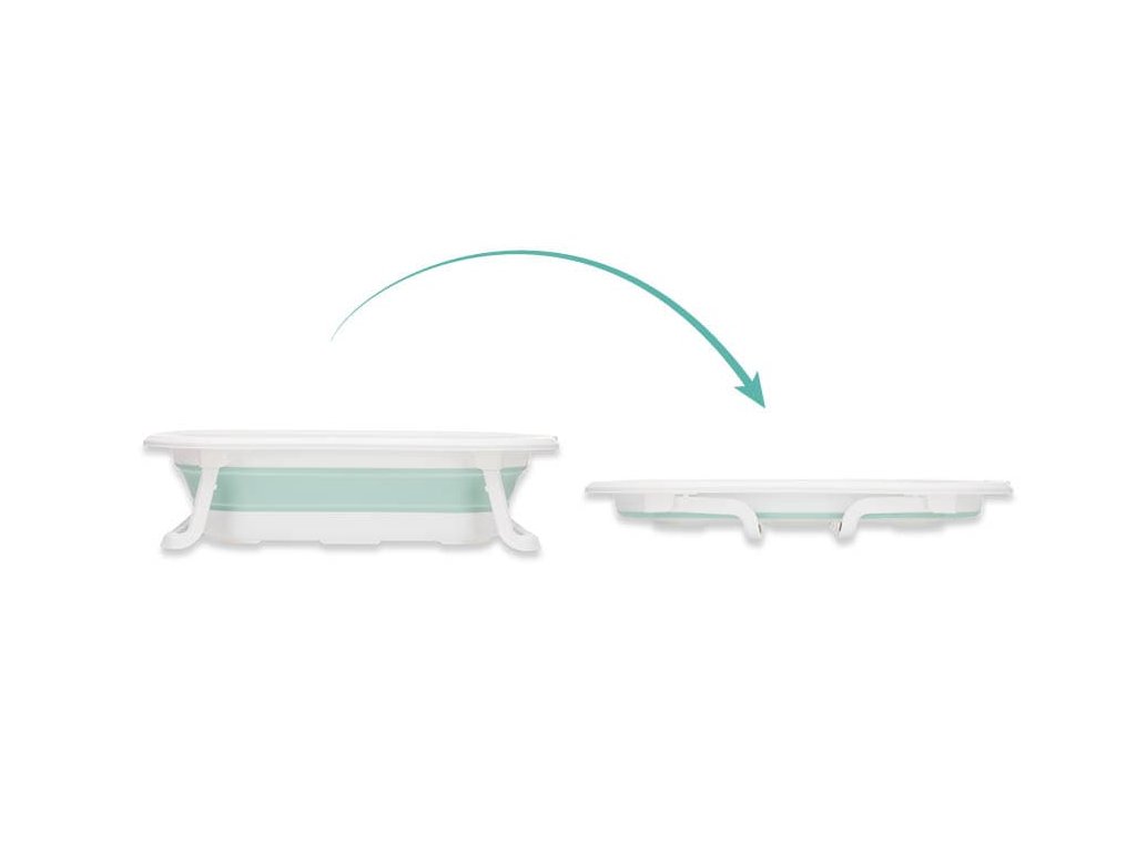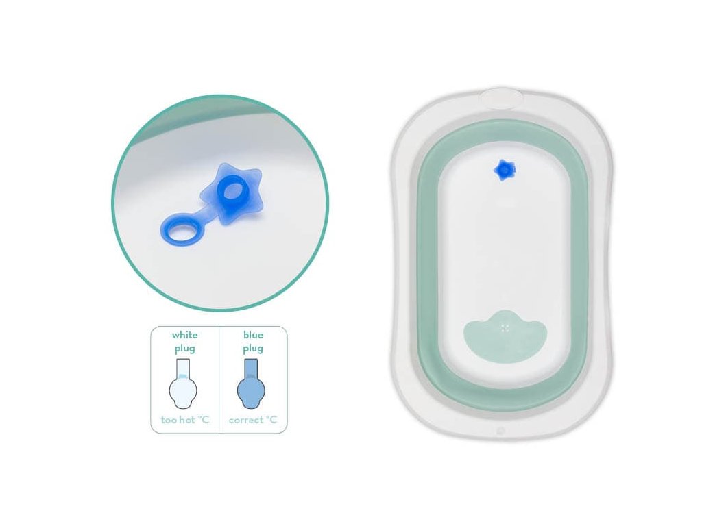 Skládací vanička je velmi praktická díky inovativnímu skládacímu mechanismu. Díky tomu se snadno složí a také rychle znovu použije. S ukazatelem teploty ve vypouštěcí zátce můžete na první pohled vidět, zda je voda ještě příliš horká změnou barvy. Protiskluzová vrstva ve vaničce pro bezpečné stání.
