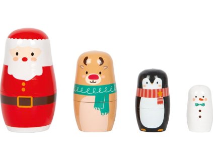 Rozměry: největší matrjoška 11 cm, Ø 6 cm, nejmenší 5 cm, Ø 2,5 cm Věk: 2+ Materiál: dřevo Počet: 4 ks