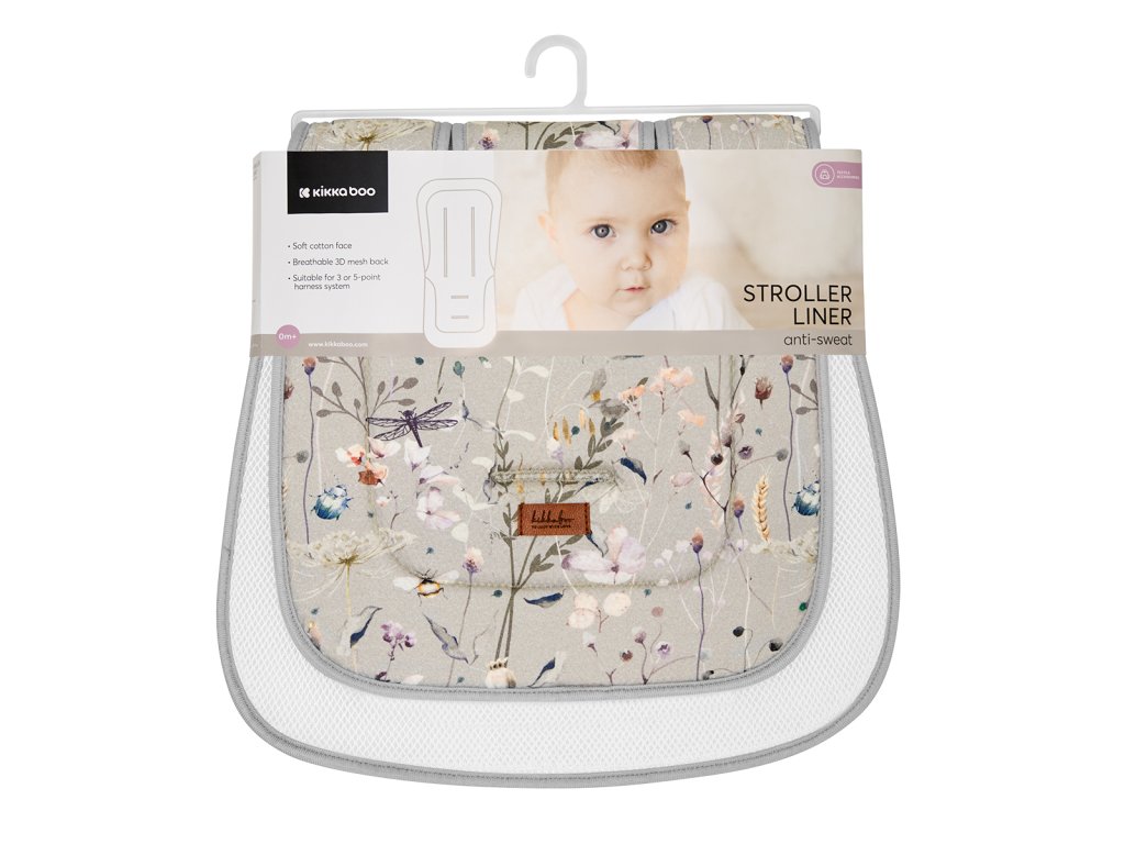 KIKKABOO Sedací podložka do kočárku Dreamy Fields Grey