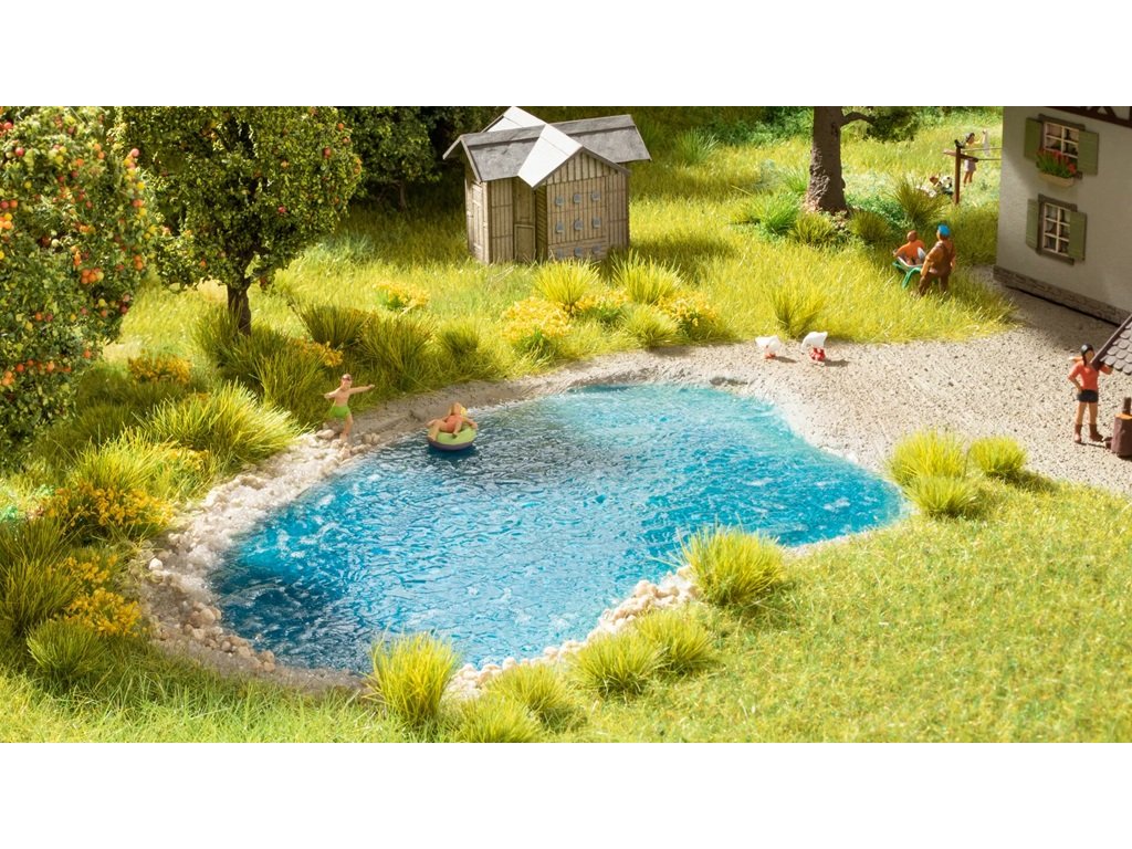Ideální čas pro tvorbu vlastních jezer a rybníků! Průhledná jezerní fólie umožňuje snadno a rychle vytvořit realisticky vypadající vodní plochy. Stačí ji vystřihnout na požadovaný tvar a přilepit. Protože fólie není barevná, lze dno jezera upravit libovolným odstínem podle vlastní představy. Pro dosažení co nejlepšího výsledku se doporučuje použít speciální sadu vodních barev. Hlavní vlastnosti: se strukturou vlnjedná se o model, nejedná se o hračkuvhodné od 14 letměřítko H0, TT, N, Z, 0, 1, G, H0m, H0eSizing info