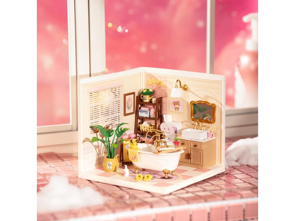 RoboTime 3D dřevěná skládačka Miniatura domečku Dívčí koupelna