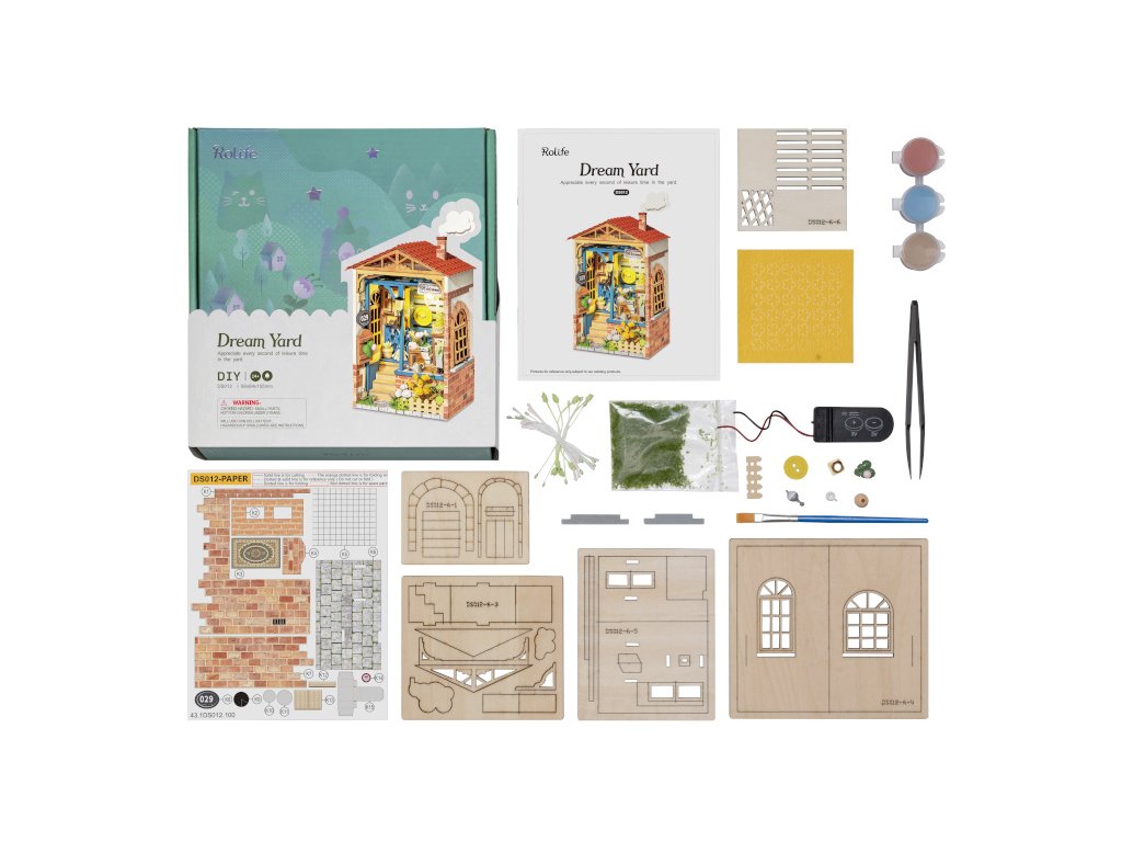 RoboTime 3D dřevěná skládačka Miniatura domečku Dvorek snů