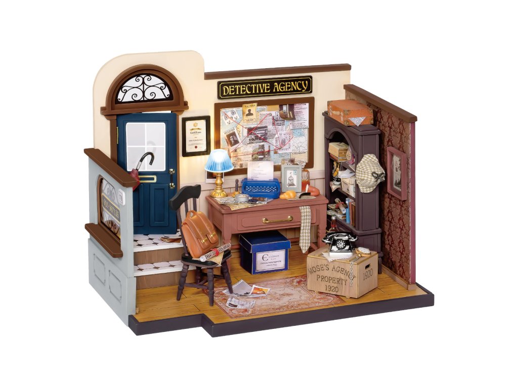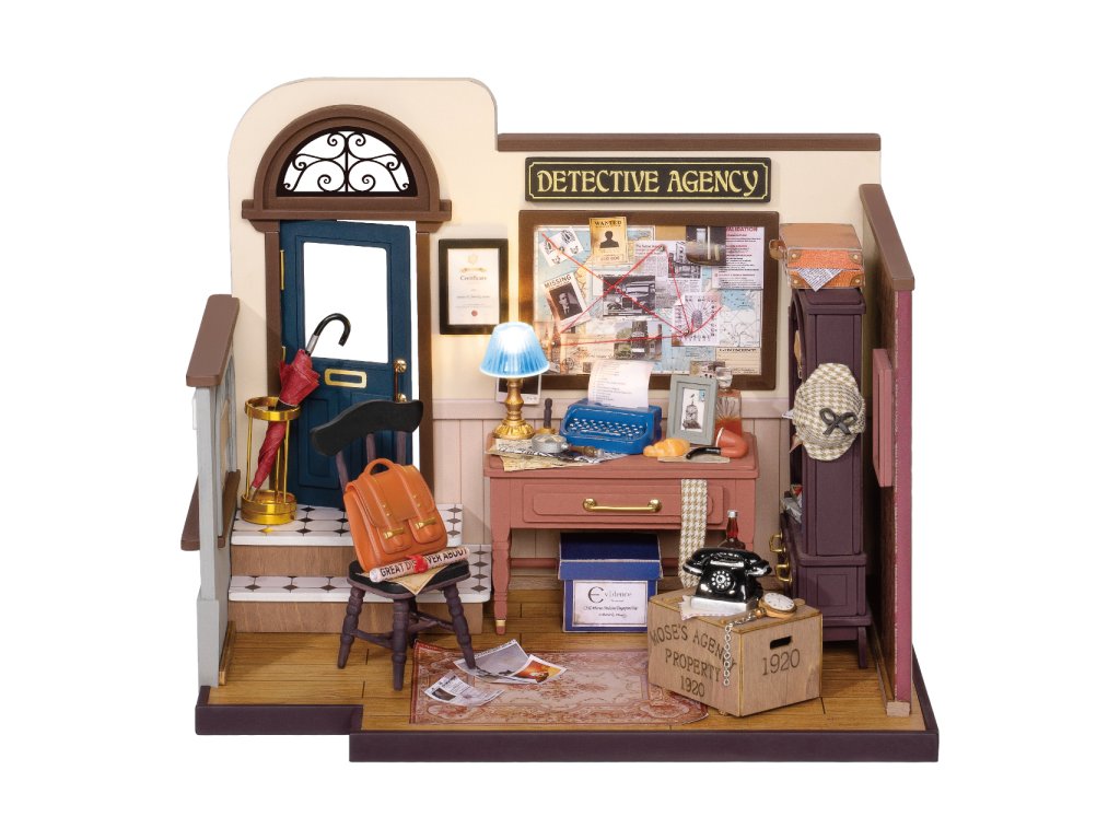 RoboTime 3D dřevěná skládačka Miniatura domečku Kancelář soukromého detektiva