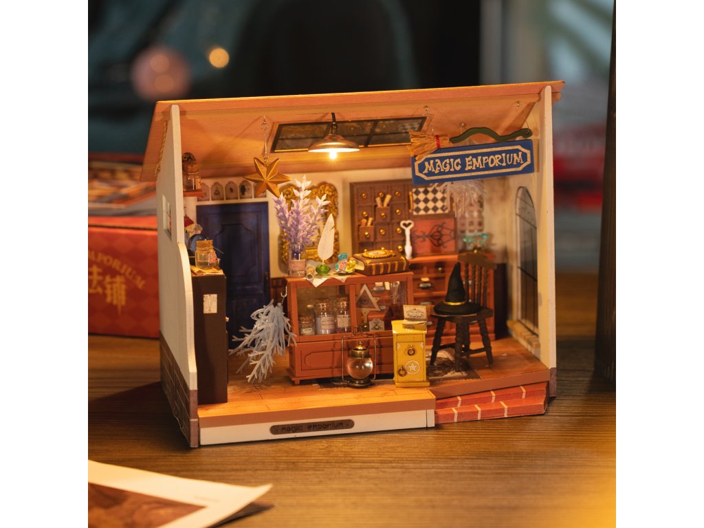Navštivte krámek kouzelnice Kiki vonící bylinami a tajemnými přísadami do magických lektvarů! Objevte svět detailních miniatur Robotime přicházejících v podobě jedinečných výtvarných stavebnic. Při jejich sestavování strávíte příjemné chvíle a výsledkem můžete zkrášlit zákoutí svého pokoje. Téměř každá souprava je vybavena LED osvětlením, které spolu s barevností výsledného modelu vykouzlí útulnou atmosféru. Výtvarné sady jsou rozděleny hned do několika různých řad a tvoří výjimečně pestrou nabídku. Je Vám bližší obytný prostor, podnik, nebo něco jiného? Snadno si vyberete! Každá ze stavebnic je dodávána v rozloženém stavu. Stavba zahrnuje převážně barvení a lepení již nařezaných dílů z překližky, přípravu kartonových nebo látkových prvků a papírových potisků. V balení spolu se všemi součástmi a podrobným návodem naleznete lepidlo, barvy, štětec i jiné nástroje. K pohodlné vestavbě osvětlení doporučujeme přichystat si půlkulaté kleště. Zpravidla si při sestavování a úpravách ale vystačíte s obyčejnými nůžkami, které doma jistě vždy najdete. Hlavní vlastnosti:obsahuje díly stavebnice, lepidlo, barvy, štětec aj.odhadovaná doba sestavení 10 hodinLED osvětlení (2×AAA baterie nejsou součástí balení)stavba vyžaduje vlastní nůžky a může obnášet i použití dalšího drobného nářadíSizing info