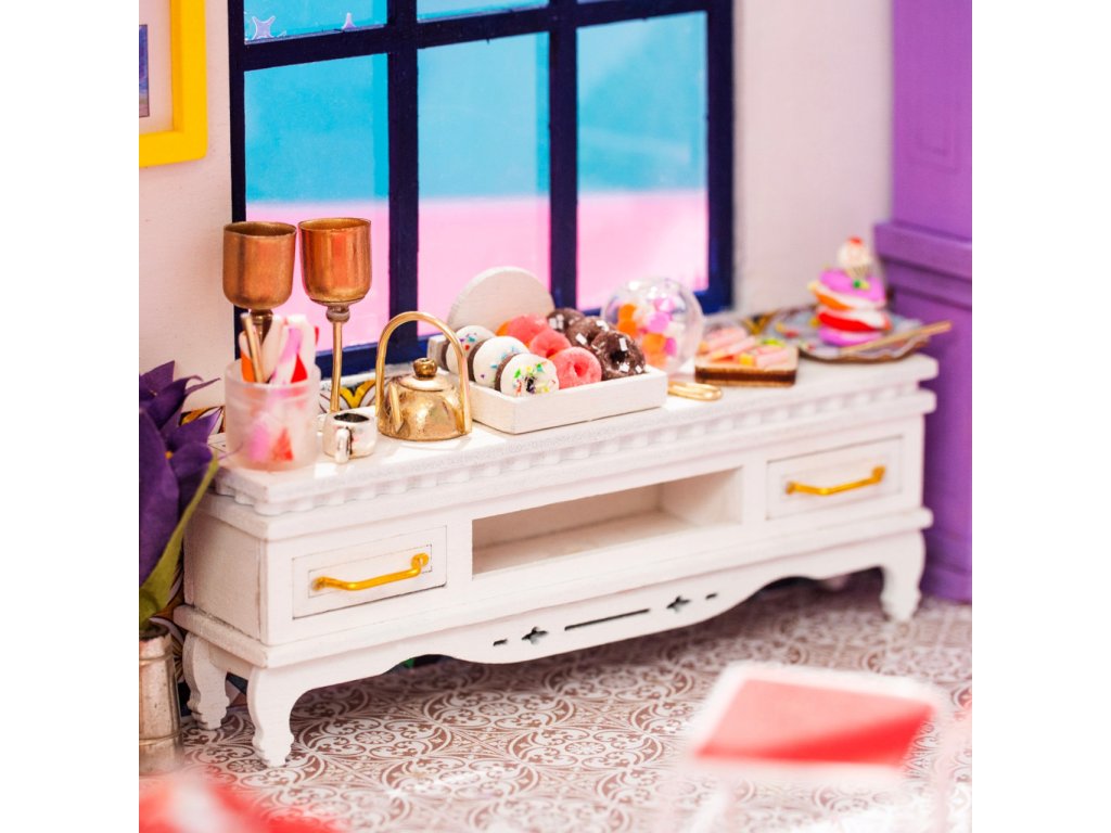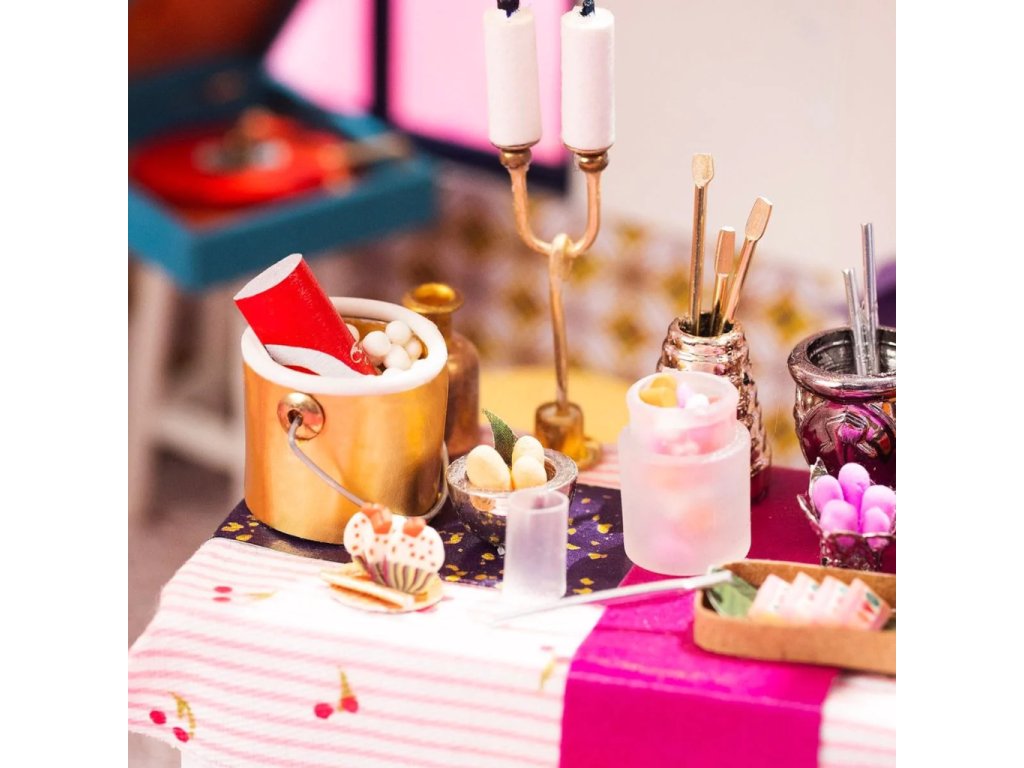 Jídelna stvořená k nekončící zábavě. Objevte svět detailních miniatur Robotime přicházejících v podobě jedinečných výtvarných stavebnic. Při jejich sestavování strávíte příjemné chvíle a výsledkem můžete zkrášlit zákoutí svého pokoje. Téměř každá souprava je vybavena LED osvětlením, které spolu s barevností výsledného modelu vykouzlí útulnou atmosféru. Výtvarné sady jsou rozděleny hned do několika různých řad a tvoří výjimečně pestrou nabídku. Je Vám bližší obytný prostor, podnik, nebo něco jiného? Snadno si vyberete! Každá ze stavebnic je dodávána v rozloženém stavu. Stavba zahrnuje převážně barvení a lepení již nařezaných dílů z překližky, přípravu kartonových nebo látkových prvků a papírových potisků. V balení spolu se všemi součástmi a podrobným návodem naleznete lepidlo, barvy, štětec i jiné nástroje. K pohodlné vestavbě osvětlení doporučujeme přichystat si půlkulaté kleště. Zpravidla si při sestavování a úpravách ale vystačíte s obyčejnými nůžkami, které doma jistě vždy najdete. Hlavní vlastnosti:obsahuje díly stavebnice, lepidlo, barvy, štětec aj.odhadovaná doba sestavení 20+ hodinLED osvětlení (2×CR2032 baterie jsou součástí balení)stavba vyžaduje vlastní nůžky a může obnášet i použití dalšího drobného nářadíSizing info