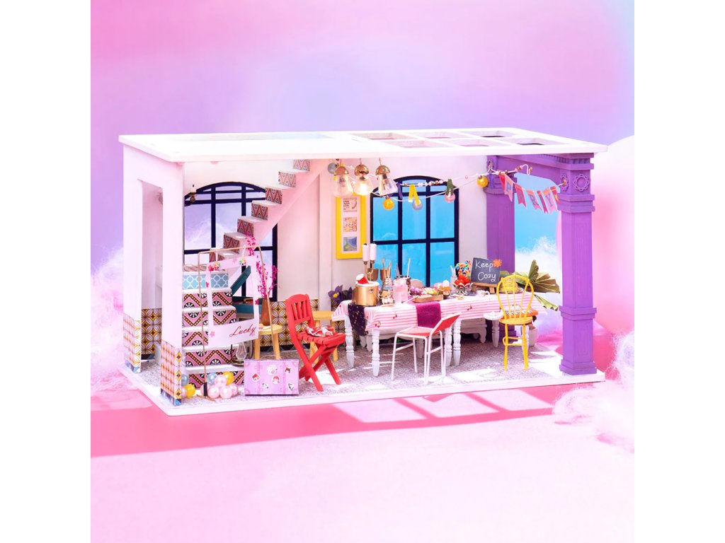 RoboTime 3D dřevěná skládačka Miniatura domečku Párty v jídelně