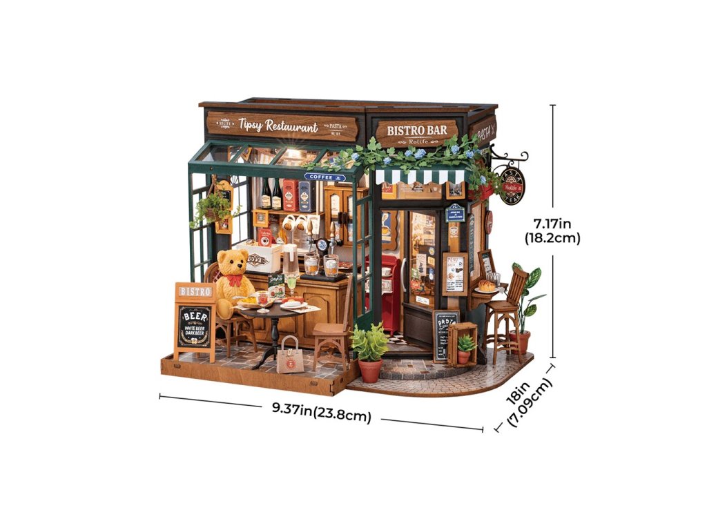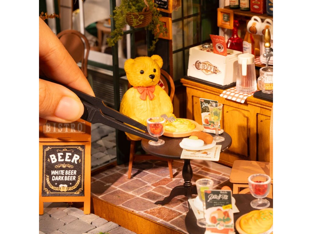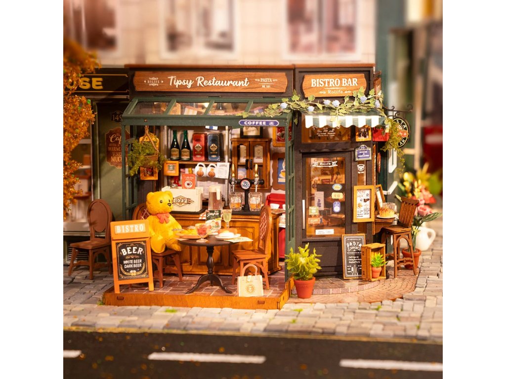 Přeneste se do útulné restaurace v sousedství, kde žádný host nezůstane hladový. V této restauraci a bistru se budou všichni cítit jako doma, když si objednají chutné jídlo a pití. Restaurace nabízí široký výběr jídel, jako jsou těstoviny, steaky a sladké dezerty, doplněné nápoji včetně piva, kávy a vína. Nenechte si ujít vintage design a příjemnou atmosféru restaurace, která je podtržena pohodlným nábytkem a květinovou výzdobou a a propracovaná do nejmenších detailů. LED osvětlení v tlumeném teplém zabarvení propůjčuje prostoru přátelskou atmosféru a vybízí k posezení. 3D skládačka je skvělým způsobem, jak si užít kreativní a edukativní hraní a zároveň vytvořit nádherný model, který se může stát netradičním dárkem či ozdobou interiéru. Skládání skládačky podporuje rozvoj jemné motoriky, prostorového myšlení a trpělivosti. Pozvěte svou rodinu nebo přátele a užijte si zábavné tvoření bez nutnosti použití lepidla nebo nástrojů. Všechny dílky jsou přesně vyřezané, a lehce do sebe zapadnou, aby výsledek byl stabilní a odolný. Skládačka je dodávána v nesloženém stavu, zabalená v krabici s podrobným návodem k sestavení. Hlavní vlastnosti: medvídek není součástí balení297 precizně vyřezaných dílkůdoba sestavení 5 hodstřední obtížnost sestaveníbez použití lepidla rozvíjí logické a motorické dovednosti trpělivost ideální jako dárek nebo jedinečná dekoraceLED osvětlenívyžaduje 2 kusy baterií AAA/LR03/AM4 1,5V - nejsou součástí balenípodrobný návod k sestavení je součástí baleníSizing info
