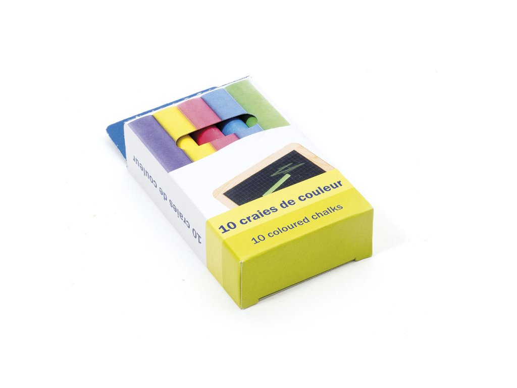 Sada kříd v kartonovém balení, která je vhodným doplňkem k tabulím. Hlavní vlastnosti:10 ks barevných křídvhodné ke psaní na tabuliSizing info