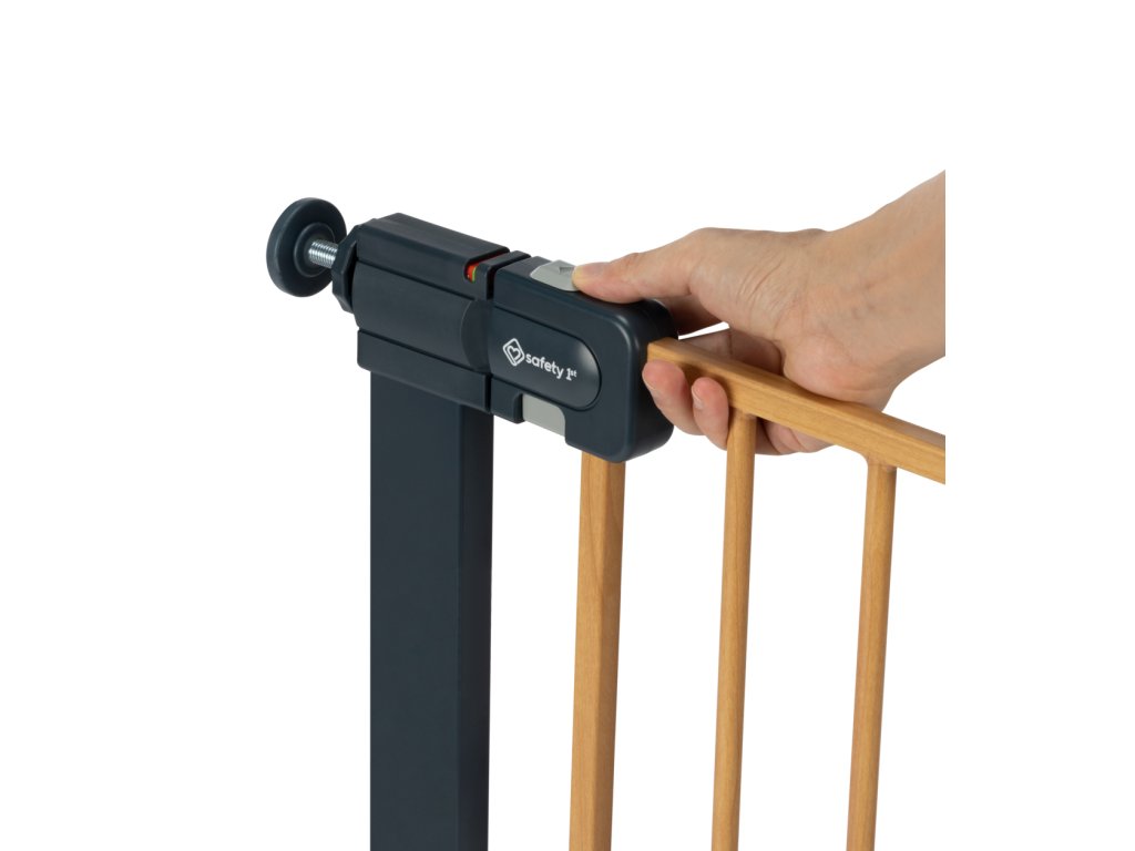 Safety 1st Easy Close Metal je kovová zábrana, kterou je možné otevírat oběma směry. Dvojitý zajišťovací mechanismus zvyšuje bezpečnost. Díky vizuálnímu indikátoru Secure Tech® budete mít jistotu, že je zábrana správně zavřena. Jednoduchá instalace bez vrtání. Zábrana je vhodná do dveří či prostoru mezi stěnami o rozměrech 73 cm až 80 cm a lze ji rozšířit pomocí samostatně dostupných prodloužení až na 108 cm. Rám ve tvaru U zajišťuje pevné ukotvení Jednoduchá instalace bez vrtání Instalaci umožňují 4 tlakové šrouby Pohodlné otvírání jednou rukou Mimořádně široký průchod Indikátor Secure Tech® ukazuje, zda je zábrana bezpečně zajištěna Možnost nastavení otvírání v obou směrech. Dvojitý zajišťovací mechanismus zavírání zvyšuje bezpečnost Materiál: kov Pro otvory 73 – 80 cm Výška zábrany 73 cm Možnost dokoupení rozšíření zábrany, se kterým je možné zábranu používat do otvorů šíře až 108 cmDoplňkové parametry