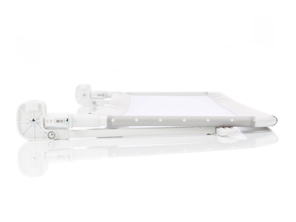 Při montáži stačí zábranu postele pouze nasadit na lamelový rošt, utáhnout bezpečnostní pás a položit matraci zpět nahoru. Pomocí speciální skládací funkce lze zábranu postele přes den sklopit a na noc opět postavit.