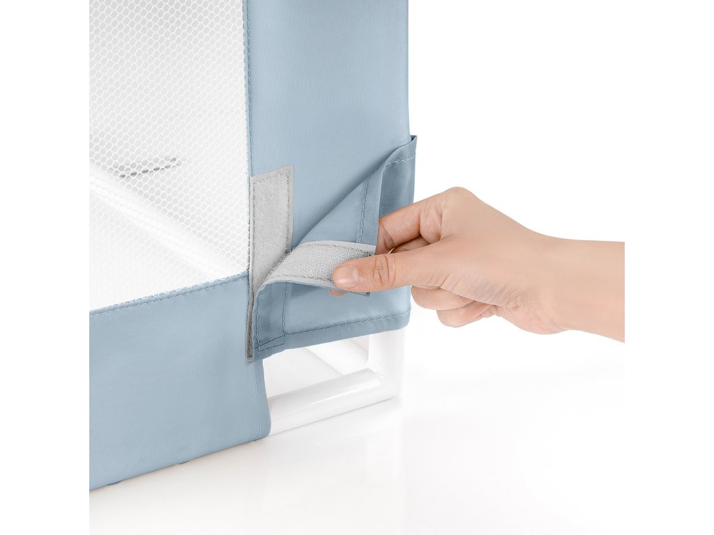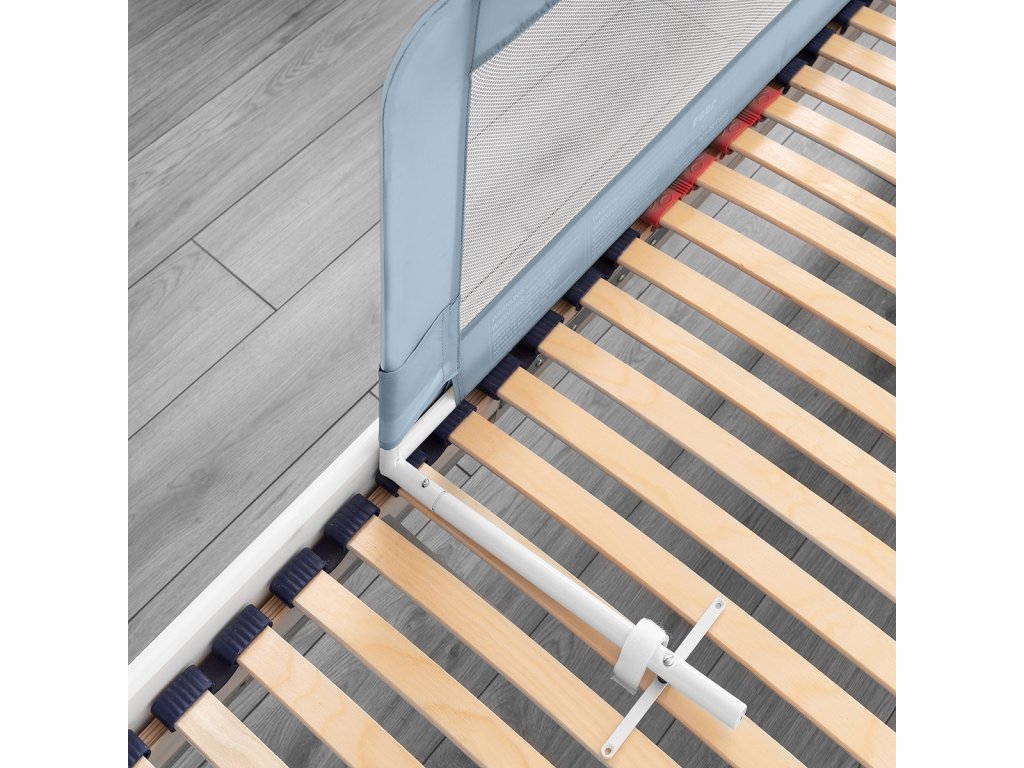 S výškou 50 cm chrání vaše děti před pádem z postele. Je vhodná pro postele od 150 do 210 cm délky. Zábrana postele je dodávaná předmontovaná, takže montáž je velmi snadná. Je možné ji připevnit 3 typy uchycení (šroubováním, popruhem na suchý zip, napínacím pásem). Skvěle se hodí na cestování, protože je malá a praktická. Díky praktickému zásuvnému systému jej můžete rychle a snadno sestavit, rozložit nebo složit několika pohyby. Soušástí balení je také praktická nylonová taška, která usnadňuje přepravu.