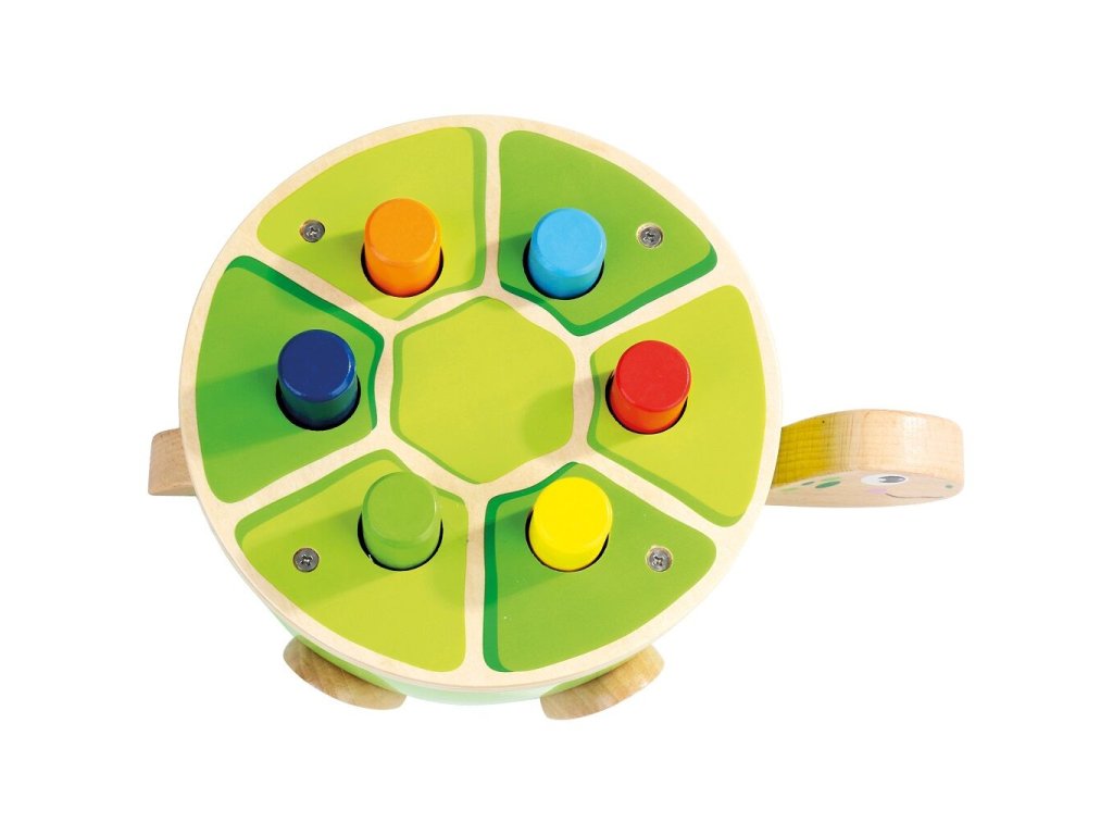 Barevná zatloukačka ve tvaru želvy pro malé děti. Zábavným způsobem rozvíjí dovednosti a soustředění našich nejmenších. Při zatloukání barevných kolíčků do dřevěného krunýře, vyskakují želvičce nohy a hlava. Hračka, která zaručeně probudí dětskou zvídavost a udrží pozornost na dlouhou dobu! Zábavná, barevná zatloukačka želva je vyrobena z lakovaného bukového dřeva a ABS. Kladívko má přilepený plstěný potah, aby klepání nebylo příliš hlučné. Podporuje jemnou motoriku, soustředění a trénuje koordinaci ruka-oko. Pro děti ve věku od 36 měsíců. Hlavní vlastnosti: podporuje jemnou motorikurozvíjí dovednosti soustředěnítrénuje koordinaci oko-rukavhodné od 3 letSizing info