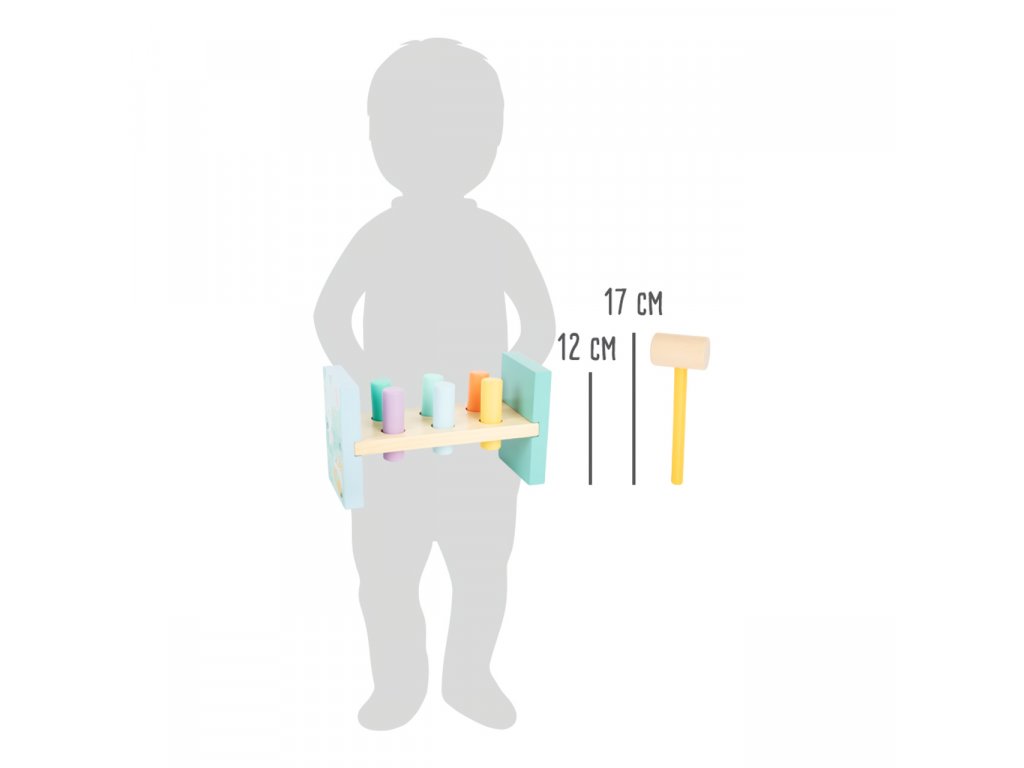 I zatloukání může být stylové! Se zatloukací hračkou v pastelových barvách si děti mohou změřit svou sílu. Klasická hra, která trénuje koordinaci ruka-oko a motoriku dětí. Zatloukačka má krásné barvy a ilustraci zvířátek. Po zatlučení všech kolíků hračku jednoduše otočte. Krásná zatloukací hračka je součástí produktové řady „Pastel“ a zaujme vysokým viditelným podílem dřeva a moderním zabarvením v pastelových barvách. Hlavní vlastnosti: ilustrováno, jemné pastelové barvyrobustní a odolné provedeníSizing info