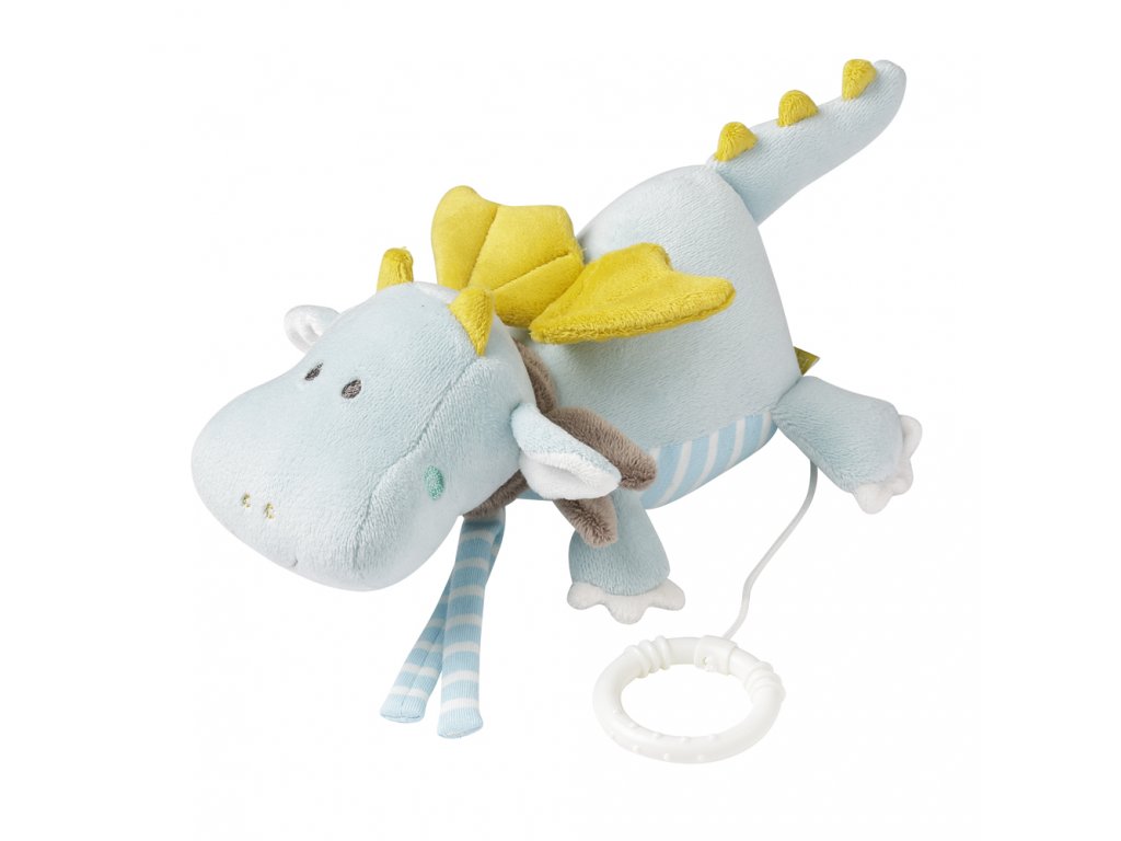 Malý hudební box ve tvaru letícího draka s vyjímatelným hudebním mechanismem. Hračka je vyrobena z měkkých, příjemných materiálů, které vybízejí k doteku a mazlení. Letící netopýrek má na zádech zip, kterým můžete vyjmout hrací strojek. Ve spodní části hračky je šňůrka s kroužkem, který se snadno ovládá. Zatáhnutím spustíte ukolébavku. Netopýr se dá snadno připevnit pomocí uvazovacích šňůrek.