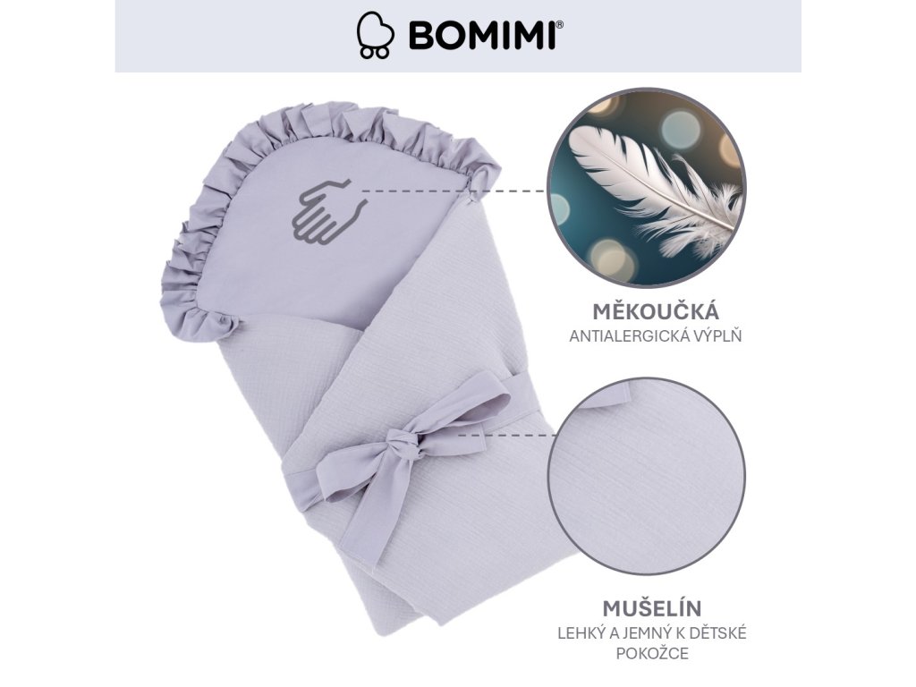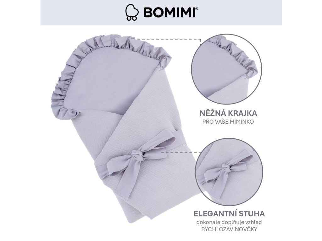 Bomimi Rychlozavinovačka s volánkem, mušelín, šedá