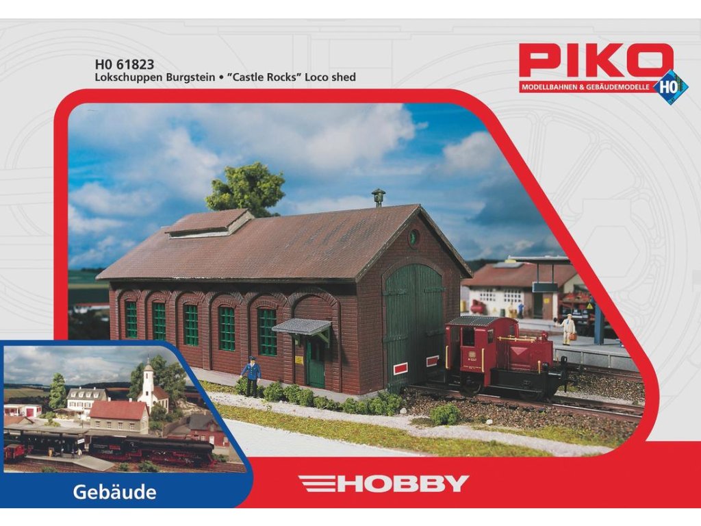 Video je pouze ilustrační, zobrazuje příbuzný produkt. Jednokolejná výtopna (depo) stanice Burgstein ze série modelů PIKO HOBBY zvláště vhodně doplní stejnojmenné nádraží a spolu s ním pomůže vytvořit ucelený obraz nádraží malého města. Ostatní předměty zachycené na obrázku (auta, figurky atd.) nejsou součástí dodávky. Plastikové miniatury PIKO naleznou uplatnění při návrzích realistických kolejišť a dioramat. Propracovanou barevností napodobují své předlohy s maximální věrností. Detailní a přesné plastové výlisky jednotlivých dílů do sebe hladce zapadají a díky detailnímu návodu přiloženému ke každé stavebnici je sestavení snadné, můžete tak svůj cenný čas věnovat jedinečnému návrhu krajiny a rozložení jednotlivých prvků na scéně. Mezi příslušenstvím nabízeným k těmto modelům naleznete rozmanité doplňky, spotřební materiál i průvodce s návody a cennými radami pro návrhy kolejišť. Hlavní vlastnosti:měřítko H0 (1:87)možnost rozšíření dalšími stavebnicemirealistické barvysnadné sestavení Dokumentace:návod k sestavení modelu č. 61823Sizing info