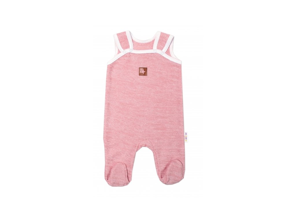 2-dílná soupravička Star, body dl. rukáv + pletené dupačky, růžové