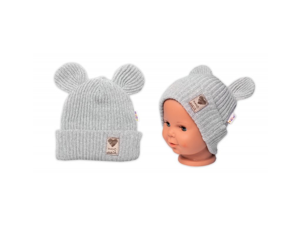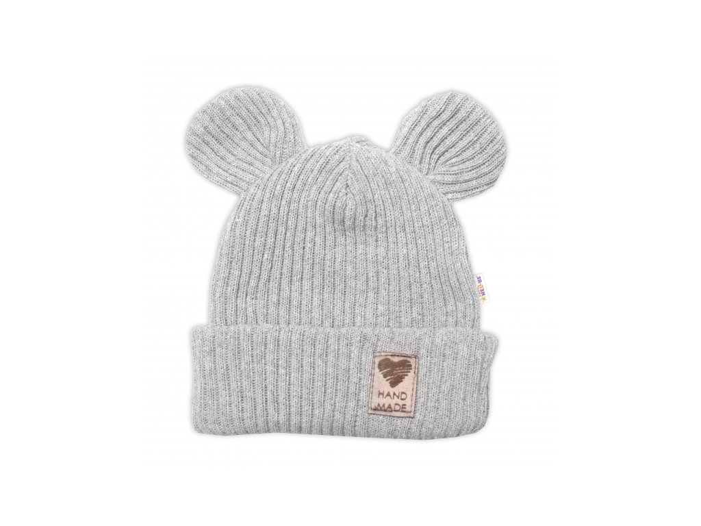 Pletená bavlněná čepice s oušky, dvouvrstvá, Hand Made Baby Nellys, šedá