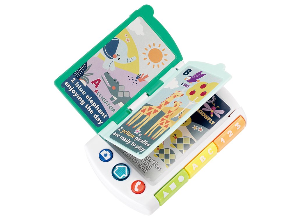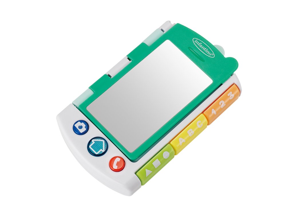 Zábavná interaktivní hračka Infantino, která spojuje telefon na hraní a malou obrázkovou knížku plnou překvapení. Na přední straně má velké zrcátko a tlačítka, se kterými si dítě může hrát na volání nebo focení. Po otevření stránek se spustí vzdělávací obsah – hračka přečte jednoduché věty a vybízí děti k objevování tvarů, barev a čísel. Hudební část nabízí 4 originální písničky, 43 povzbuzujících frází a 6 zábavných zvukových efektů. Všechny mluvené části jsou v angličtině. Vyměnitelné baterie 2xAAA 1,5V součástí výrobku. Vhodné pro děti od 6 do 36 měsíců.Doplňkové parametry